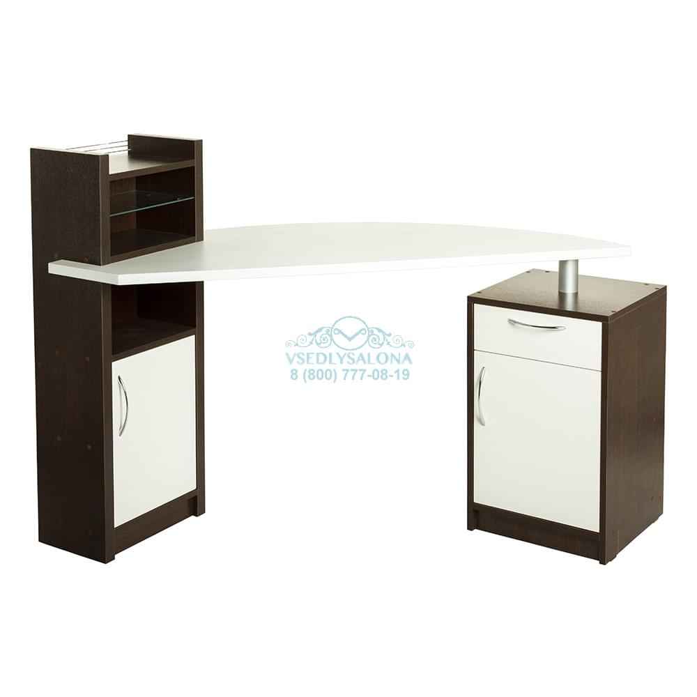 Маникюрный стол 207 – новое, профессиональное изделие, дизайнерский подход и необычная компоновка, где применены все новшества парикмахерского дела и создан натуральный атрибут экстра класса для сложной работы. Этот комплект состоит из крутой на вид лунной столешницы, хромированного крепления с цельной основой, двух тумб, одна имеет две полки, ниши, внутри со стеклом, вторая полку и большое отделение для расходных материалов. Стиль покоряет все вершины технологического прогресса, а также фанатов, эксклюзивных ценителей мирового шедевра. Надежное, классика в необычной, современной упаковке. Фишка стоит каждой копейки, которая может потратится в ходе оформления интерьера.
