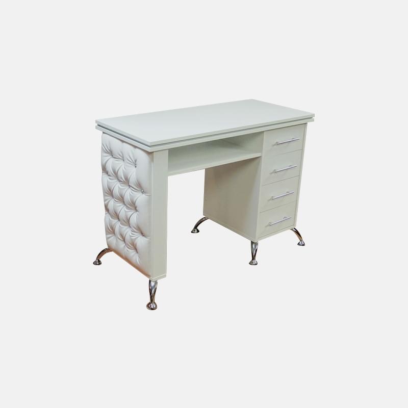 Практичный и удобный в эксплуатации маникюрный столик «Пэскуэлино» - сочетание стильного дизайна, легкости и вполне доступной стоимости. Здесь есть все для комфортной работы – большая столешница, вместительная тумба с 4 ящиками, возможность установки вытяжки.