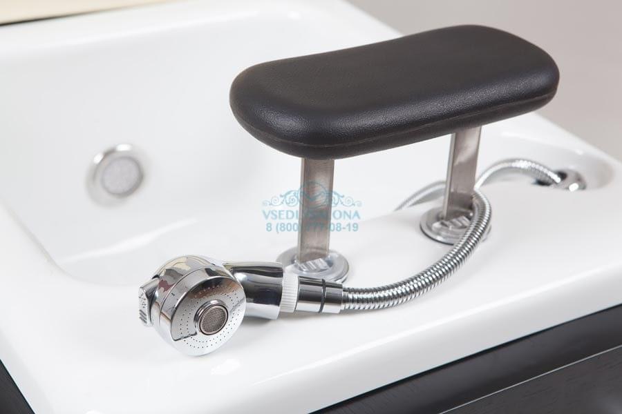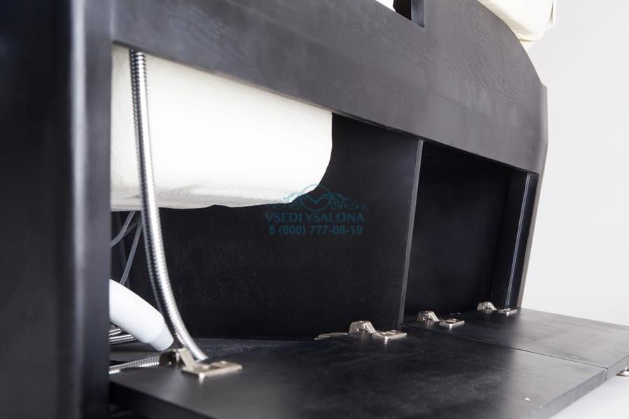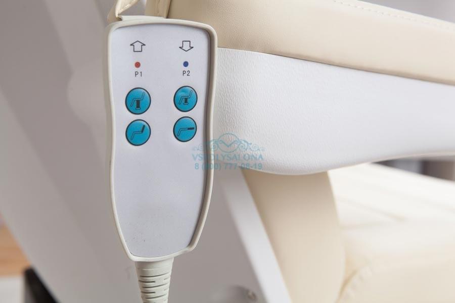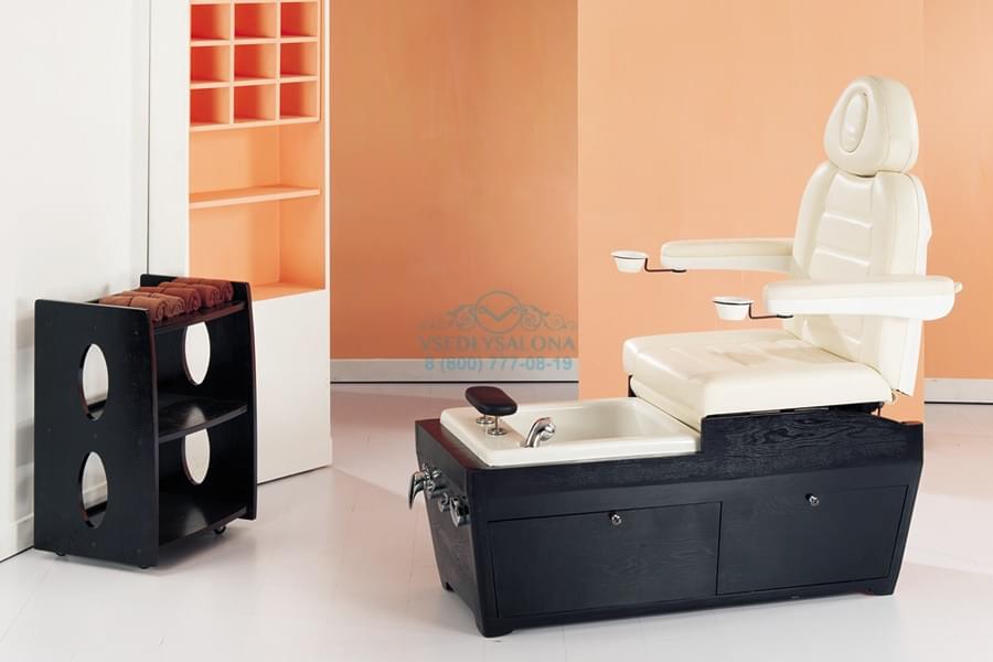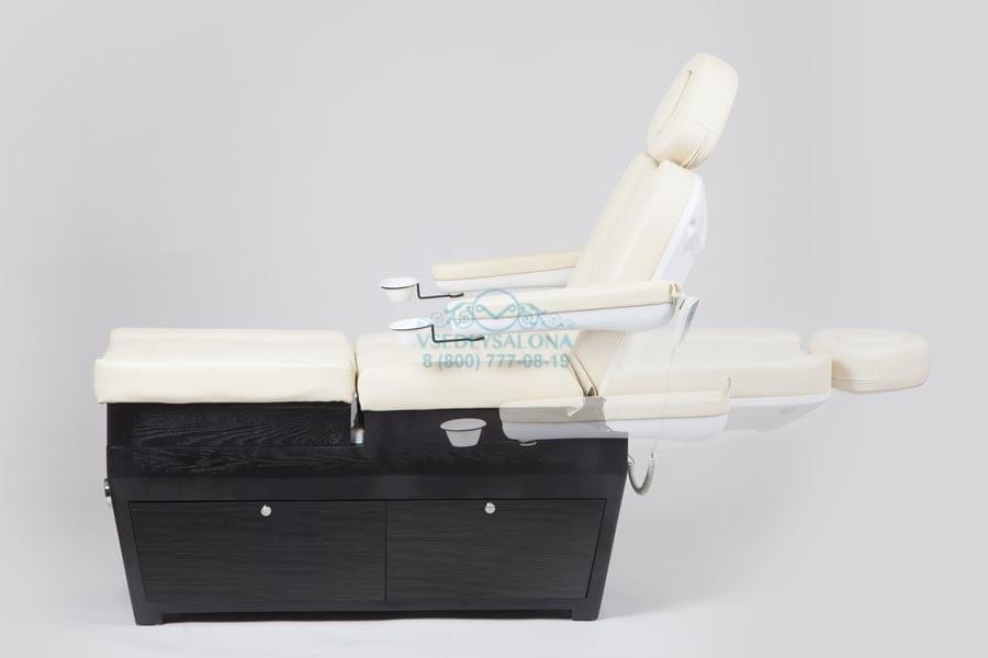 Эстетично красивое и многофункциональное кресло, которое представляет собой СПА комплекс, подходящий для маникюрных, педикюрных и косметологических процедур. При трансформации подойдет даже для массажа. Выполнено в число белом цвете из прочной эко кожи, благодаря чему идеально подойдет под любой интерьер даже самого модного салона. А деревянное основание, изготовленное из натурального дерева, имеет в себе ящик, который поможет спрятать все необходимые для процедур инструменты внутрь кресла и тем самым сэкономить пространство. Также в комплект входит съемная ножная подушка.