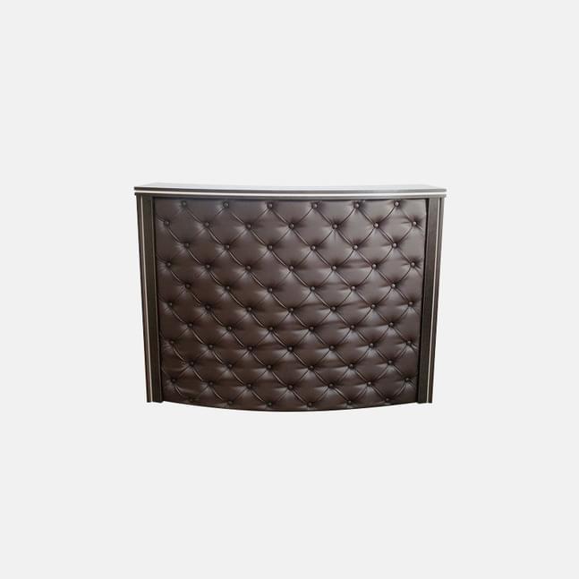 Сделать интерьер своего салона красоты изящным и необыкновенным одномерно можно при помощи выбранной мебели. И стойка администратора Famiglia подойдет любителям классики и простоты. Так как выполнена ресепшен в шоколадном цвете из ЛДСП, сверху покрыта натуральной качественной кожей, что гарантирует долгий срок эксплуатации. Но главная особенность – это каретная стяжка.