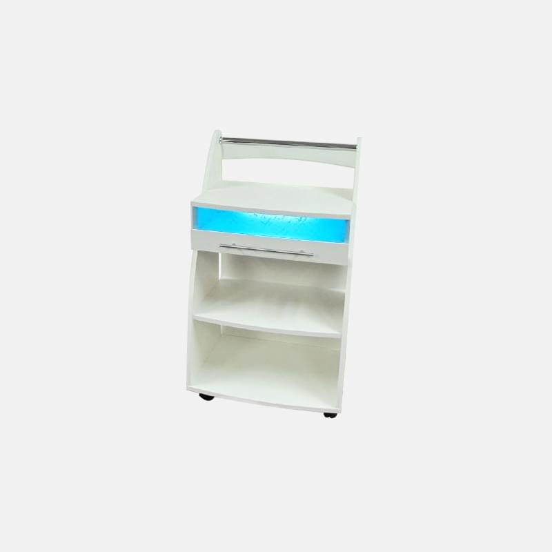 Тумба Витторио предоставляет собой классический пример того, как с помощью мебельной конструкции можно соединить эргономичность и практичность одновременно. Мебельное изделие снабжено бактерицидной УФ-лампой, с помощью которой можно стерилизовать медицинский инструменты мастера. Также есть несколько полок для дополнительного хранения инструментов и всякого рода мелочи, что также упрощает рабочий процесс мастера. Тумба снабжается передвижными колесиками, которые снимают вопрос о установке конструкции. Цветовая гамма изделия зависит напрямую от предпочтений заказчика.