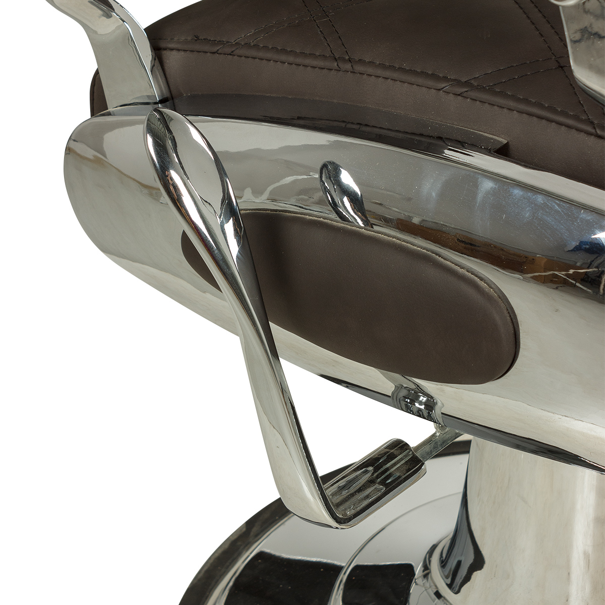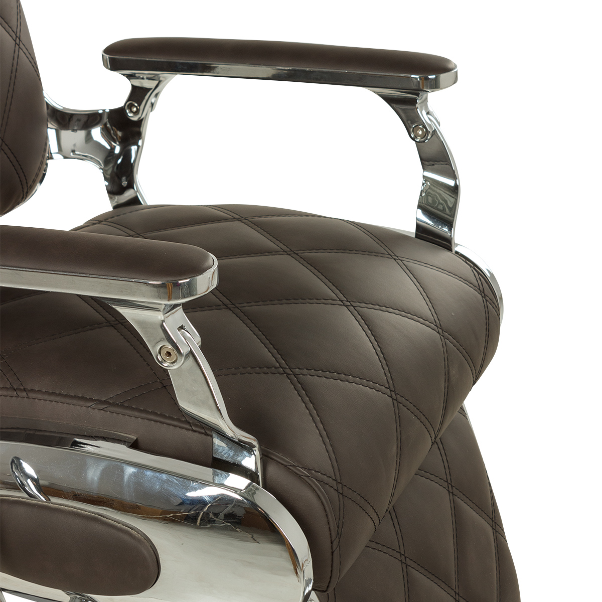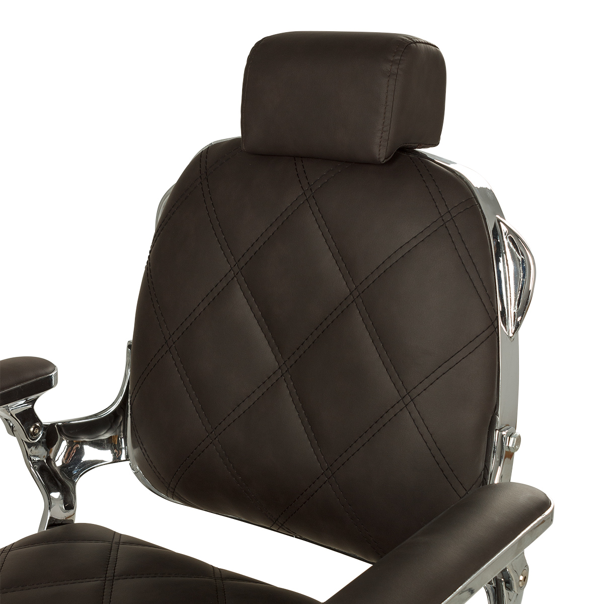 Кресло мужское барбер "Оксфорд" - модель с большим количеством хромированных деталей и прострочкой большими ромбами. Кресло имеет круглое основание и надежную, усиленную гидравлику с декорированной накладкой, которая доступна в трёх исполнениях: хромированный, белый и черный. Все эти варианты отлично впишутся в современный барбершоп. Кресло имеет стандартный функционал для барбер кресел: