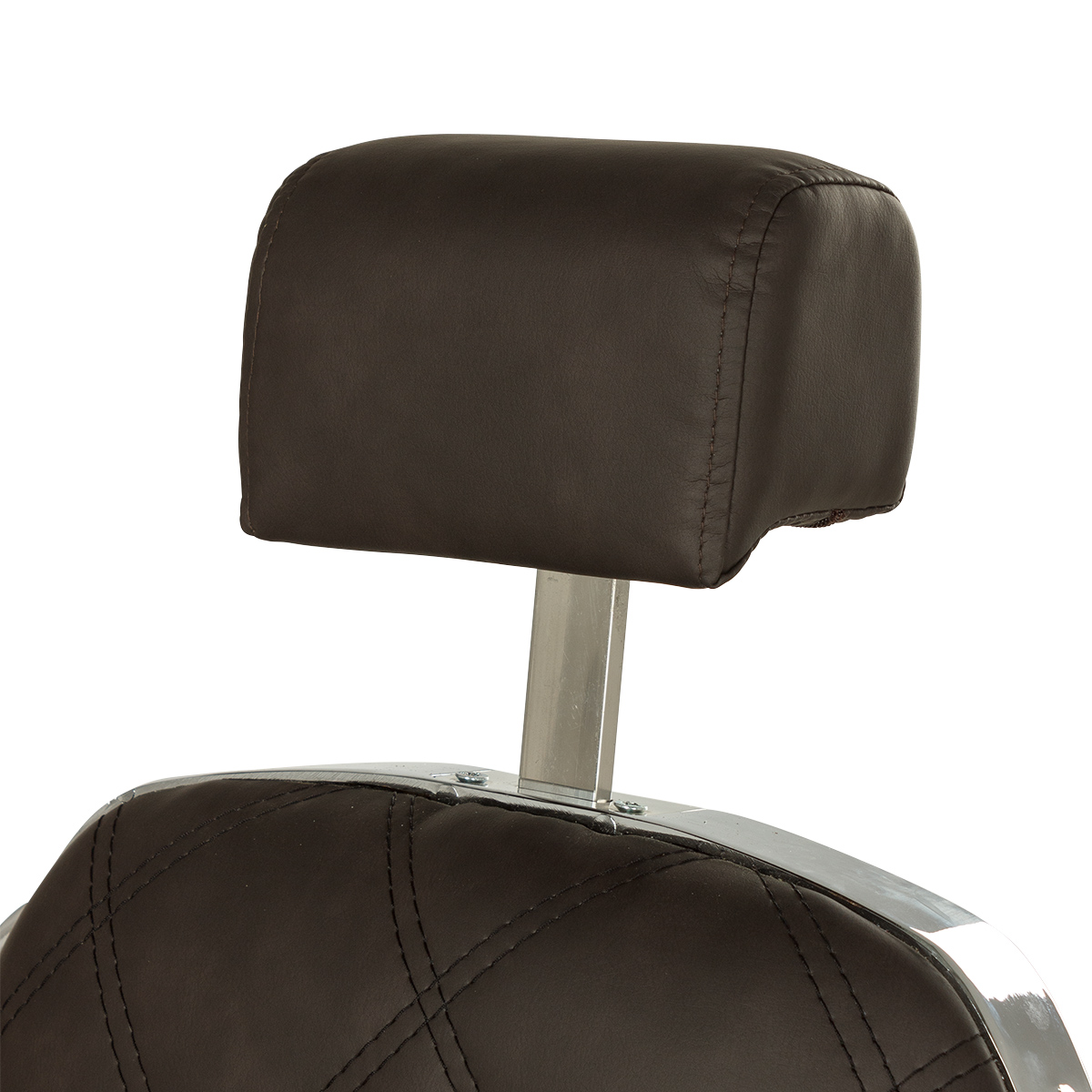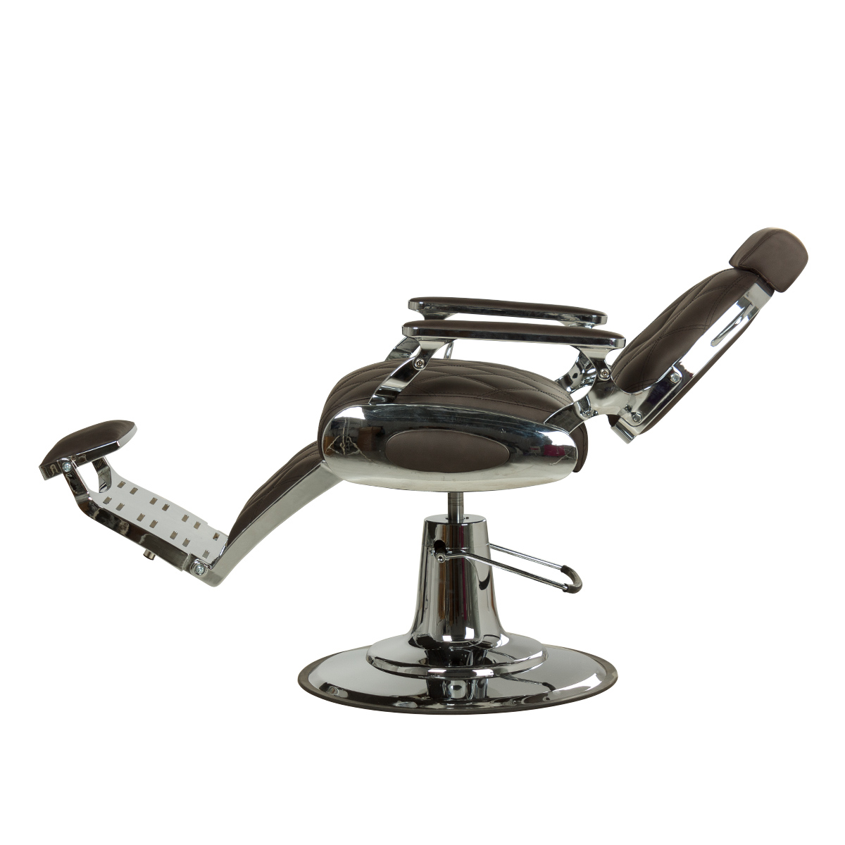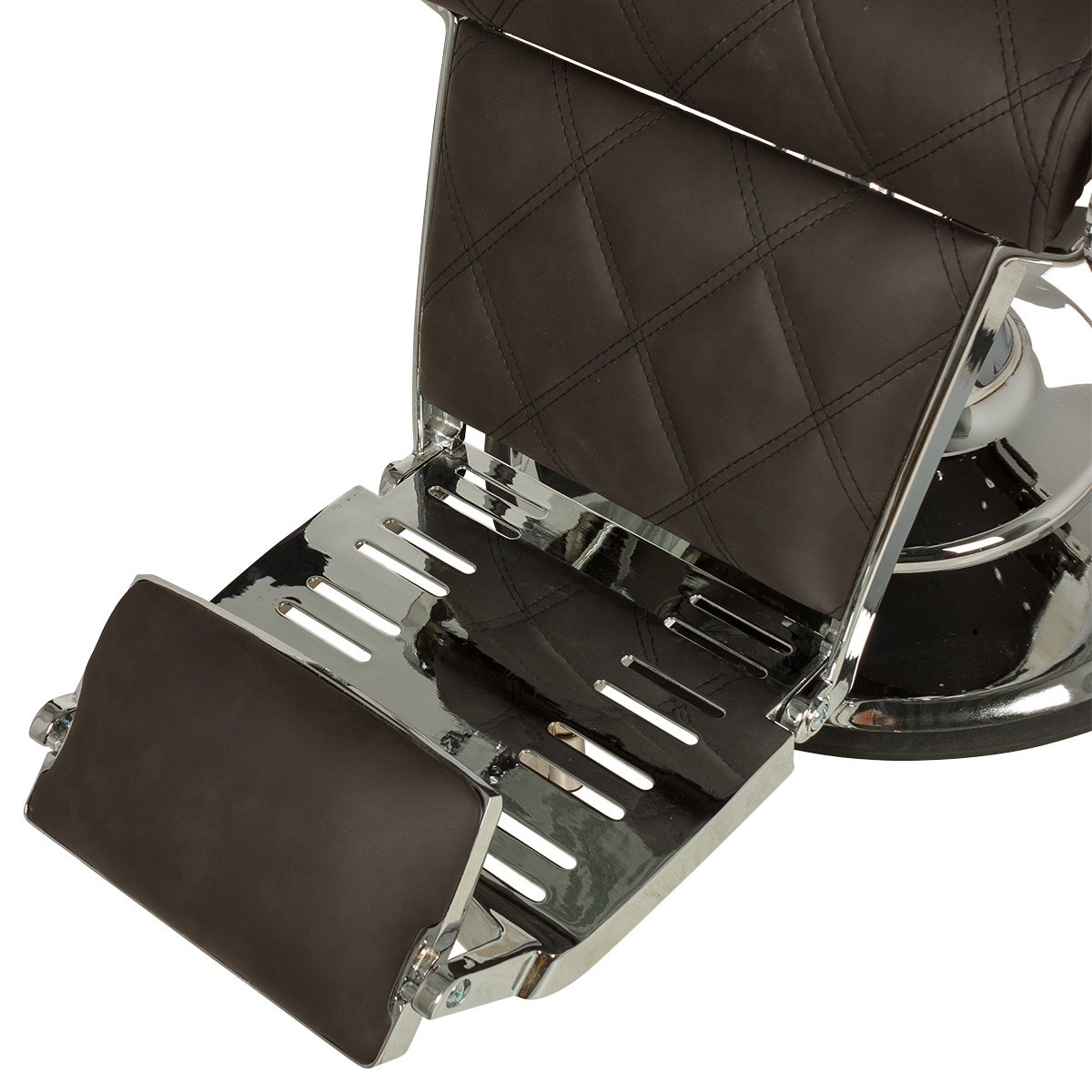 Кресло мужское барбер "Оксфорд" - модель с большим количеством хромированных деталей и прострочкой большими ромбами. Кресло имеет круглое основание и надежную, усиленную гидравлику с декорированной накладкой, которая доступна в трёх исполнениях: хромированный, белый и черный. Все эти варианты отлично впишутся в современный барбершоп. Кресло имеет стандартный функционал для барбер кресел: