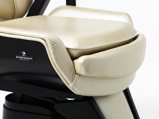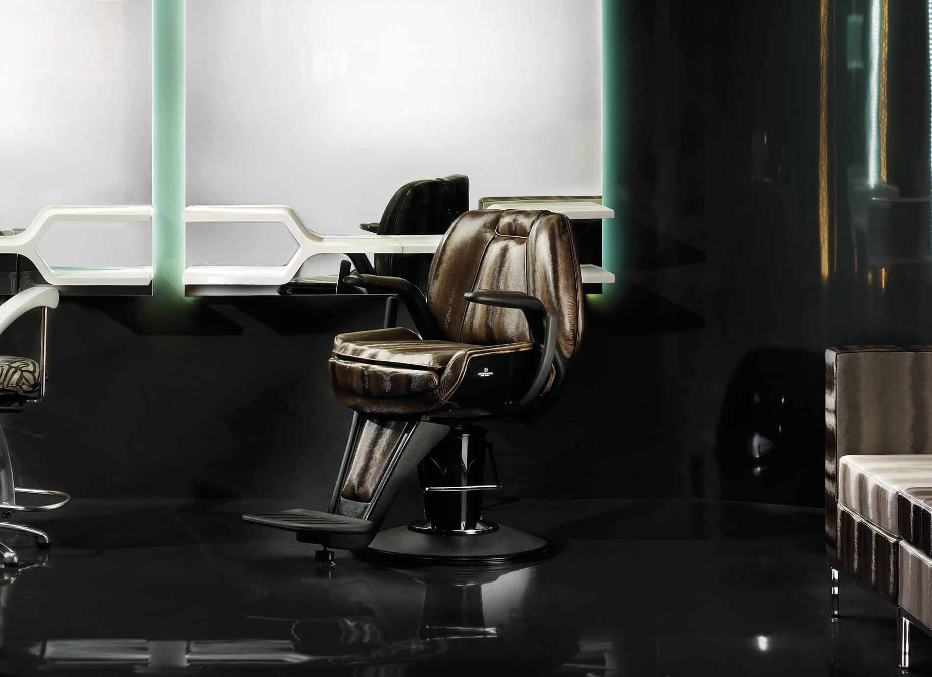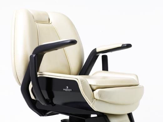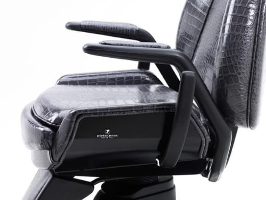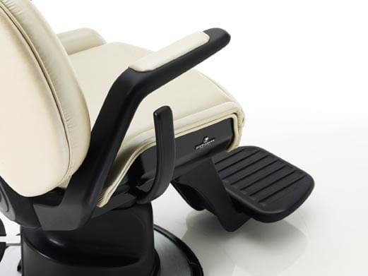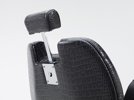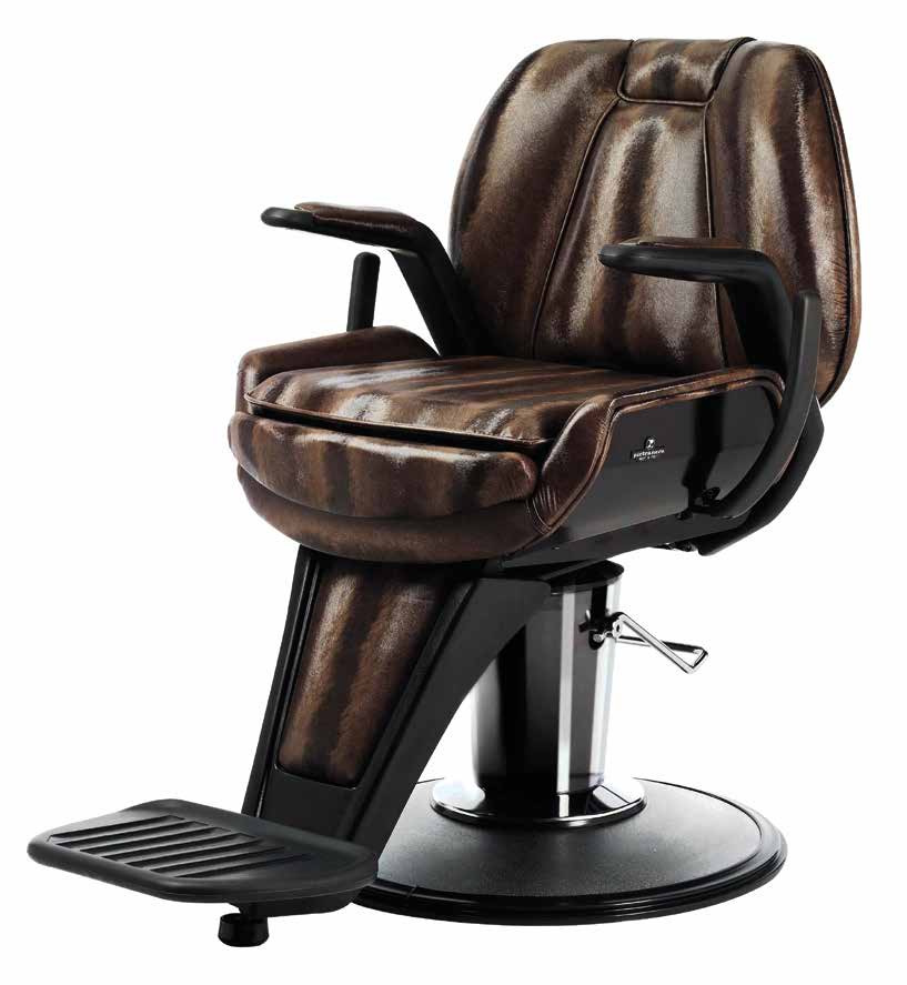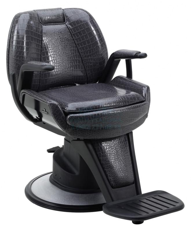 Кресло для клиента – мужское, выполнено из высококачественного поролона, каркас обтянут искусственной кожей, с выдвижным подголовником и откидной спинкой. Подлокотники выполнены из пластика, пластиковая подставка под ноги. Комплектуется гидроподъемником с фиксацией поворота, дисковая основа. Размер (ДхШ): 105x70