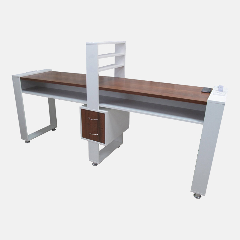 Маникюрный столик «Сабина» - это удобное рабочее место для двух мастеров маникюра. Столешница широкая, что позволяет комфортно здесь работать и размещать все необходимое – подставки для лаков, лампы и прочее. Оба рабочих места идентичны.