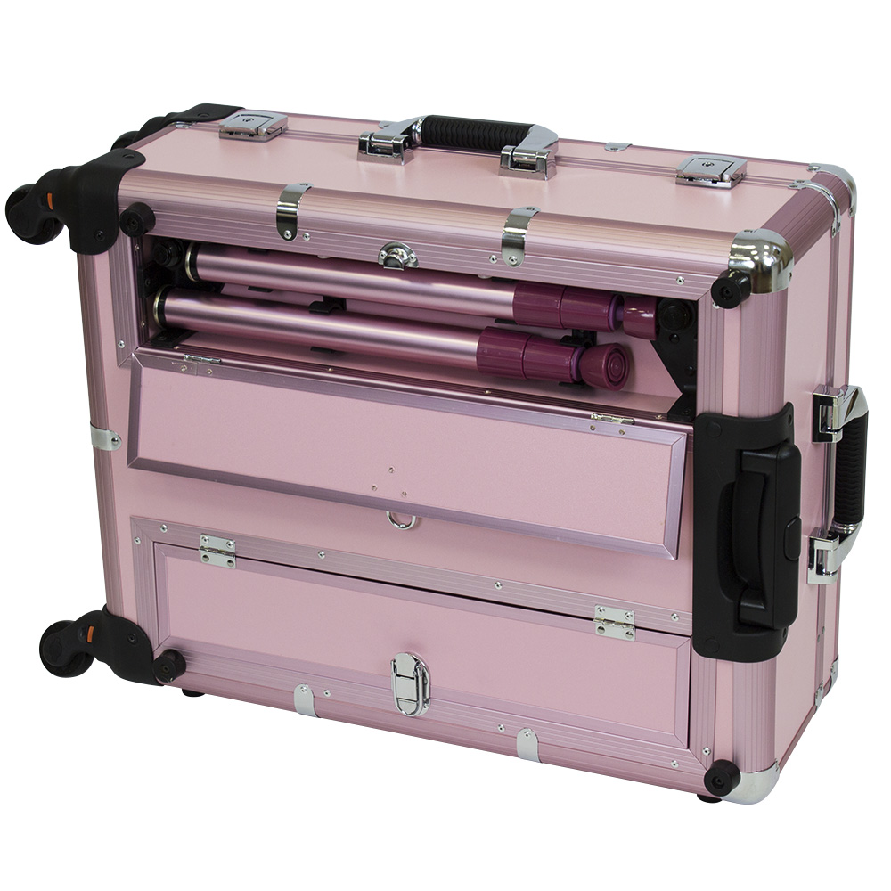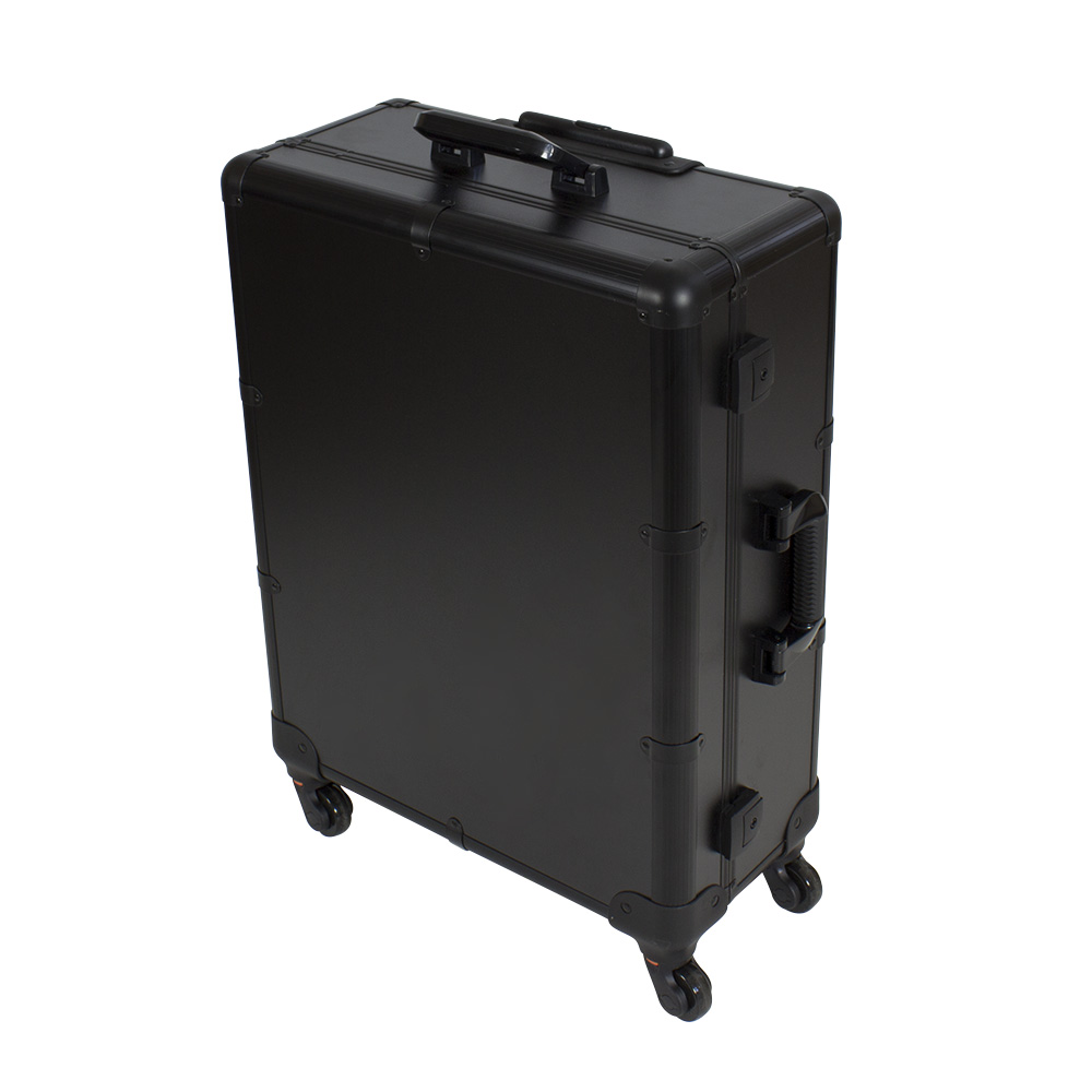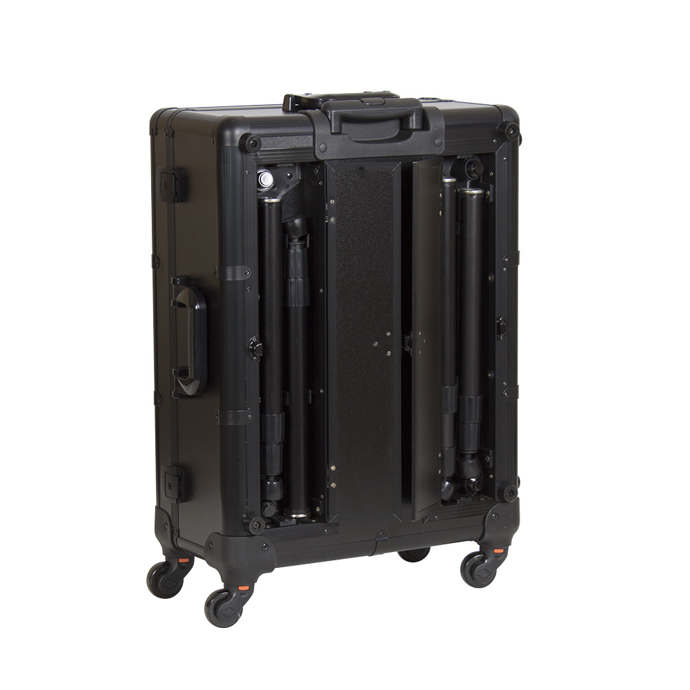 Комплектация: чемодан на колёсах с выдвижной ручкой, зеркало, 6 LED-ламп, полочки, телескопические ножки, шнур, 2 замка и ключи.