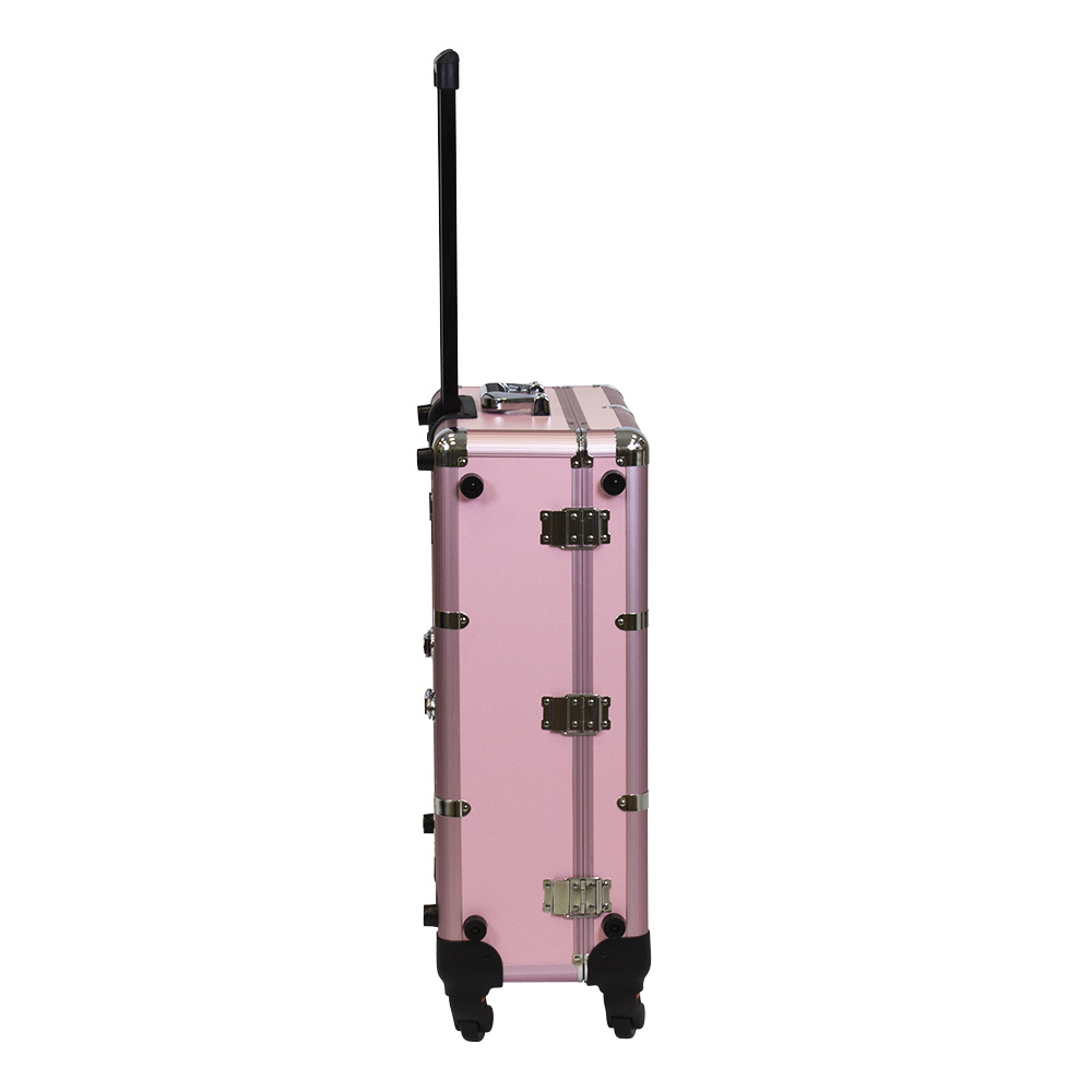 Мобильная студия визажиста VZ-210 поможет создать профессиональный уголок в любом салоне красоты или на выездном мероприятии. Студия представляет собой компактный столик с раздвижными полочками, зеркало и освещение из 6 ламп. В полочках предусмотрено специальное пространство для хранения косметики и инструмента, на верхних полках есть место для хранения палитры теней. Удобные телескопические ножки обеспечивают установку студии на любой поверхности. Высоту треноги можно регулировать. Студия визажиста собирается в компактный чемодан на колёсиках с удобной выдвижной ручкой. Поэтому её легко транспортировать, что делает её незаменимым помощником для выездной работы. Для дополнительной безопасности кейс закрывается на два ключа. Оборудование для визажистов изготовлено из ПВХ. Этот надёжный качественный материал защитит содержимое кейса от воздействия влаги и света. В открытую верхнюю часть встроено достаточно большое зеркало с гладкой поверхностью. Оно достаточно прочно и устойчиво к умеренным механическим повреждениям. Зеркальное полотно точно передаёт отображение, не искажая его. Рабочее место идеально освещается при помощи встроенных LED ламп по периметру зеркала. Шнур питания и розетка для электроприборов встроены в корпус кейса. Профессиональная студия визажиста VZ-210 дополнит интерьер любого современного салона красоты, а также станет незаменимым помощником в работе на конкурсах, модных показах и других выездных мероприятиях.