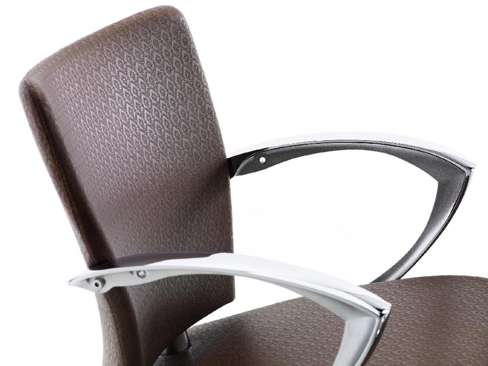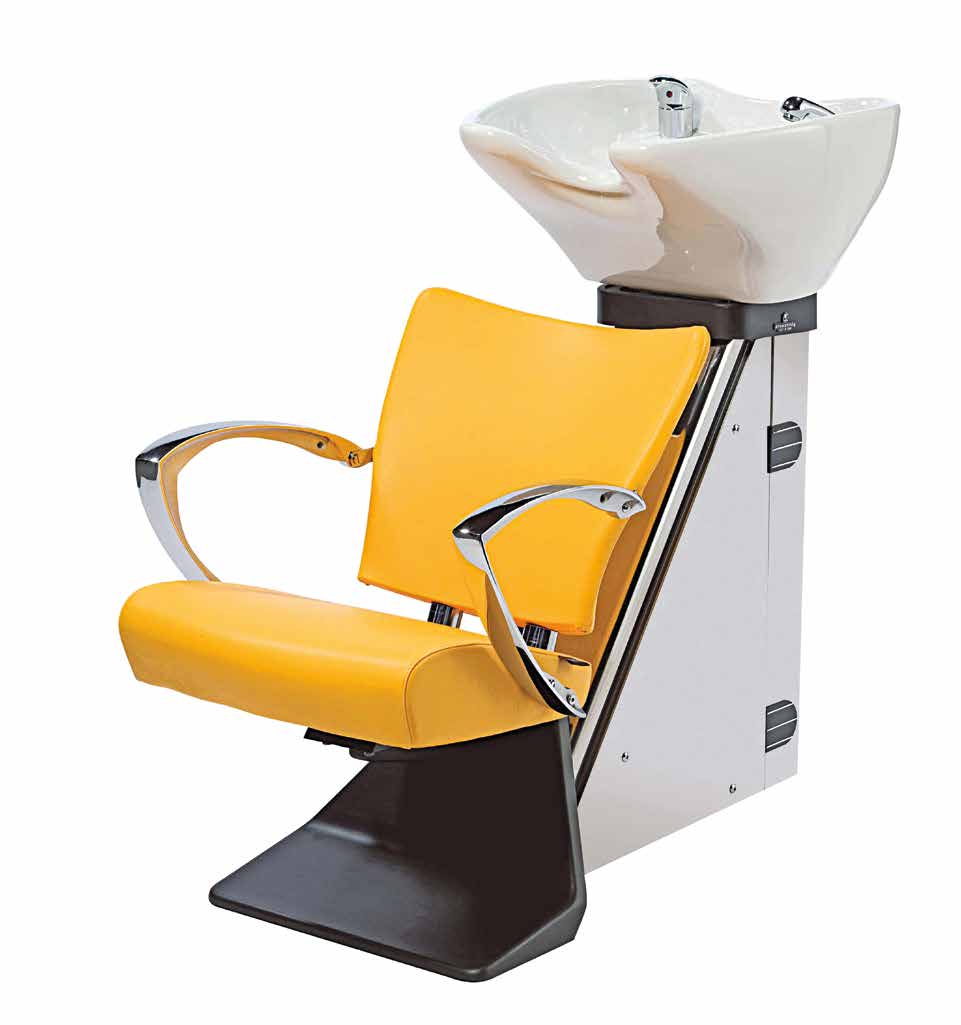 Мойка с креслом на алюминиевом каркасе. Комплектуется средней или глубокой керамической раковиной белого и черного цвета, с регулировкой угла наклона, комплектом смесителя с хромированной лейкой душа. Каркас кресла выполнен из металла, мягкие элементы обтянуты искусственной кожей высшего качества, подлокотники хромированные. Размер (ДхШхВ): 118х59х110
