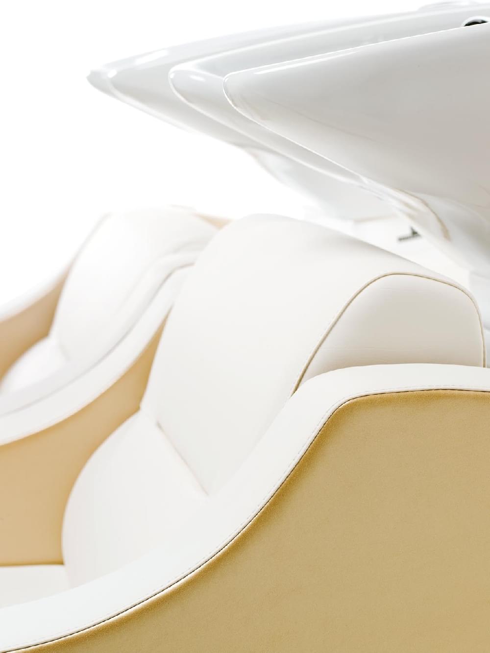 Мойка с креслом белом или черном каркасе. Комплектуется глубокой керамической раковиной белого или черного цвета, с регулировкой угла наклона, комплектом смесителя с хромированной лейкой душа. Каркас кресла выполнен из металла, мягкие элементы обтянуты искусственной кожей высшего качества, мягкое широкое кресло, возможен вариант с электрической подножкой, легкое управление с помощью ручного пульта, а также с массажем потоком воздуха. Цена указана за мойку без подножки и без массажа.