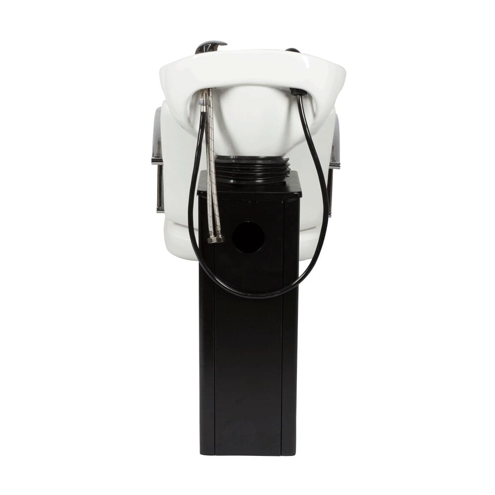 Раковина установлена на узел наклона, который крепится на металлический каркас, окрашенный в черный цвет