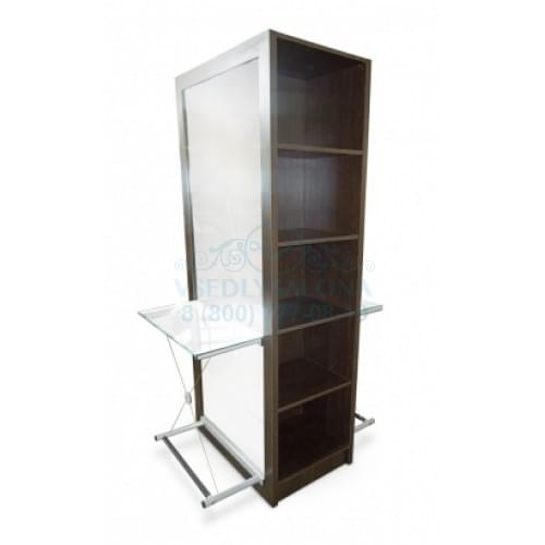 Такое зеркало, установленное в простую деревянную раму, будет хорошо сочетаться с интерьером, практически лишенным украшений: мебелью простых конструкций, грубой циновкой из натуральных волокон, дощатым полом. А большая и широкая столешница создаст удобство и эффективность работе мастера. За комбинирование цветов ЛДСП взимается доплата в размере 4% от стоимости изделия.