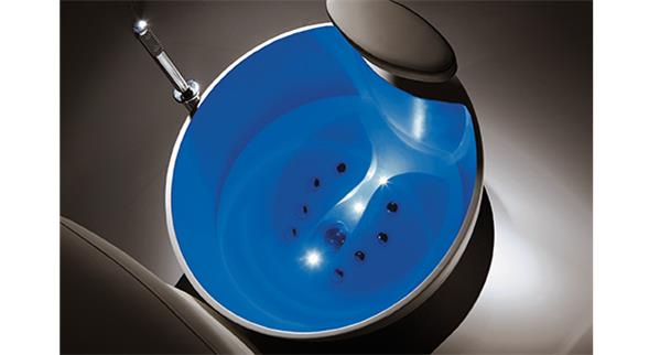 Ванна выполнена из белого материала, который легко очищается. Она оснащена душем и смесителем. Подставка для ног регулируется по высоте и глубине. Кресло обшито мягкой искусственной кожей, основание выполнено с использованием хромированной стали.