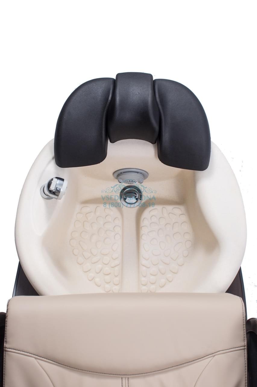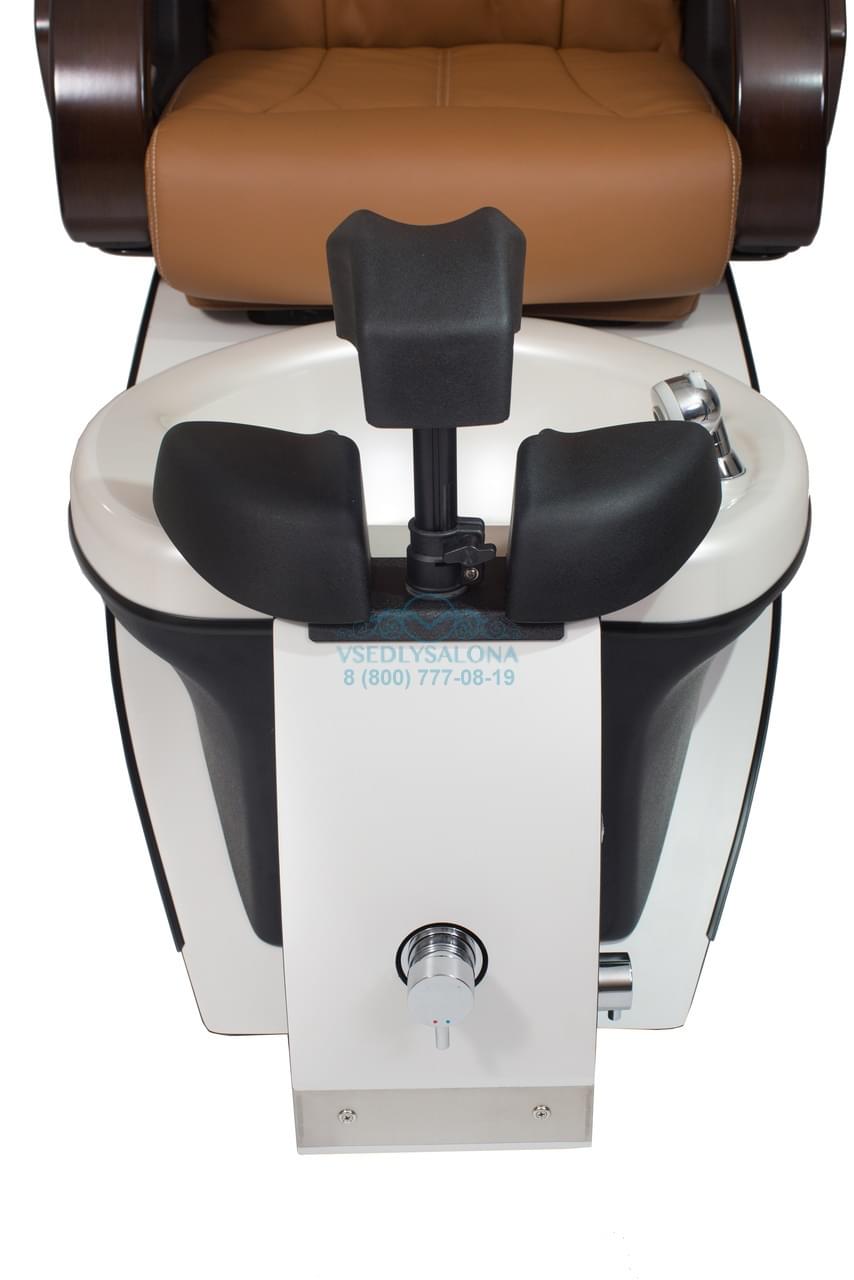 СПА комплекс в виде педикюрного кресла, которое подойдет для любого салона, предоставляющего данные услуги. Имеет много функций массажа для спины, а именно: прокатка, разминание, постукивание. Это позволит клиенту полностью расслабиться и отдохнуть во время процедуры. Внешне кресло выглядит очень презентабельно и достаточно дорого. Подлокотники, основание кресла и некоторые детали изготовлены из прочной древесины нежно-коричневого цвета, а само кресло обтянуто бежевой эко кожей. Однако цвет можно выбрать в соответствии с интерьером и цветовой гаммой вашего салона.