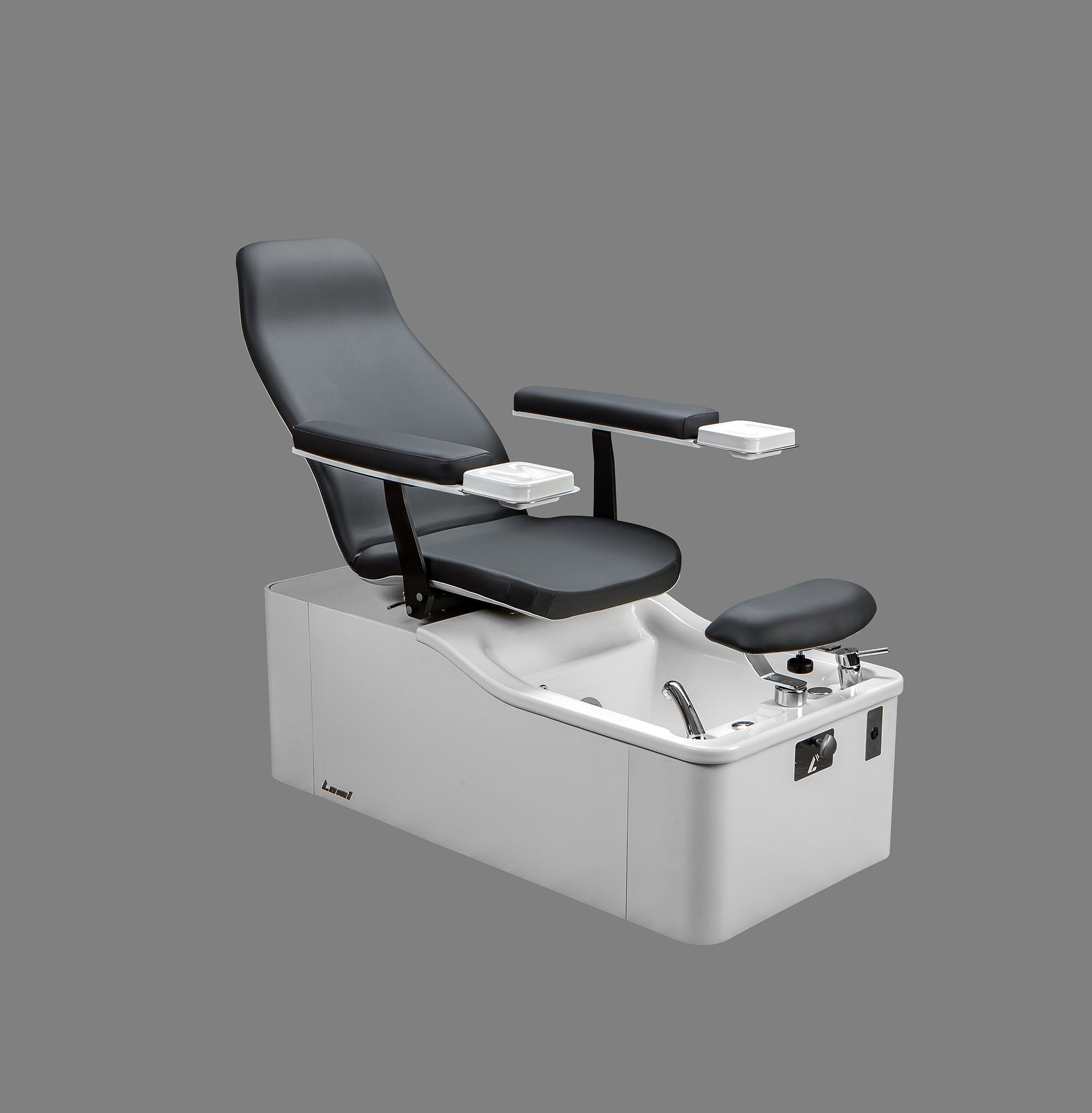 Педикюрный СПА комплекс "ELBA PEDI SPA" - предназначен для проведения процедуры педикюра. Ванна изготовлена из белого стеклопластика. Эта уникальная модель оснащена гидромассажем. Гидромассажная система без труб, которая гарантирует максимальную гигиену и простоту очистки. Благодаря многофункциональности ванны и ее форме специалисты, работающие в сфере красоты и здоровья, имеют возможность максимально комфортно выполнять процедуры маникюра, педикюра и гидромассажа, а клиенты могут удобно устроиться в кресле. Дизайн ванны позволяет мастеру занимать правильное, удобное и эргономическое положение во время работы. "ELBA PEDI SPA" гарантирует клиентам абсолютный комфорт благодаря вращающемуся креслу, изготовленному из высококачественных материалов и оснащенному регулируемой спинкой, с помощью газ-лифта, и удобными широкими подлокотниками. Кресло оборудовано удобной и мягкой опорой для стоп, которая может регулироваться по высоте и длине, легко адаптируясь к росту клиента.