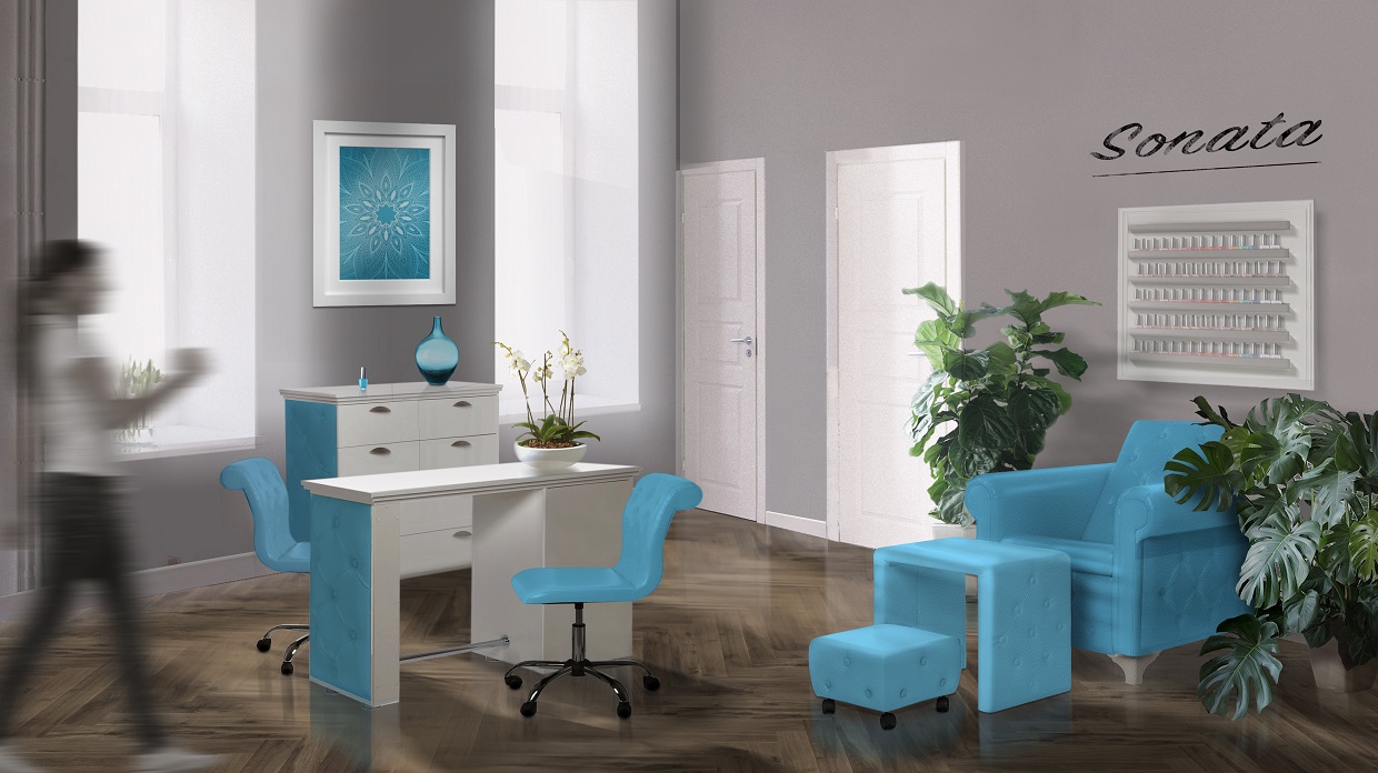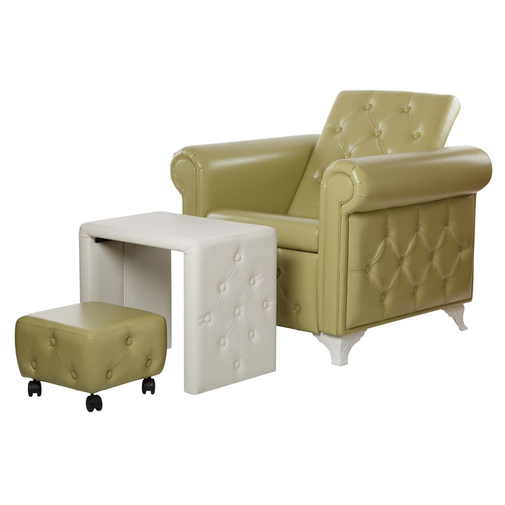 Удобный пуф для мастера маникюра на колесах с декоративными пуговицами, которые украшают внешнюю часть пуфа. Габариты: 38(Ш) x 28(В) x 38(Г)