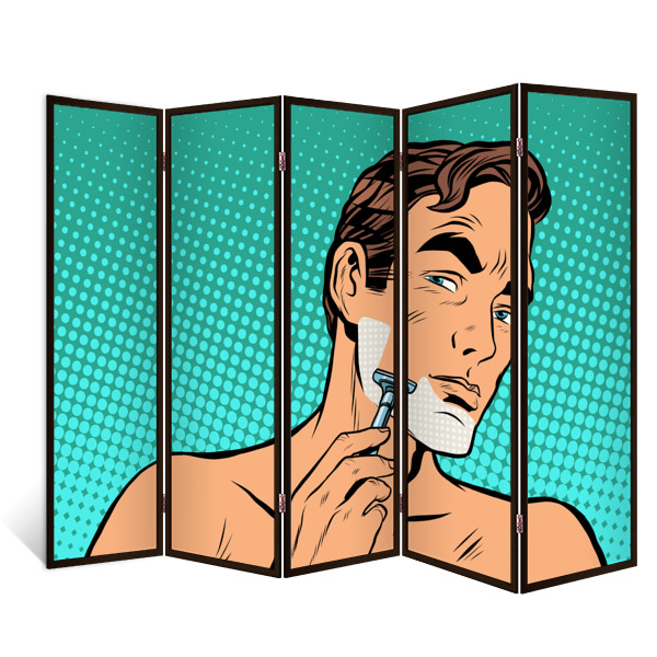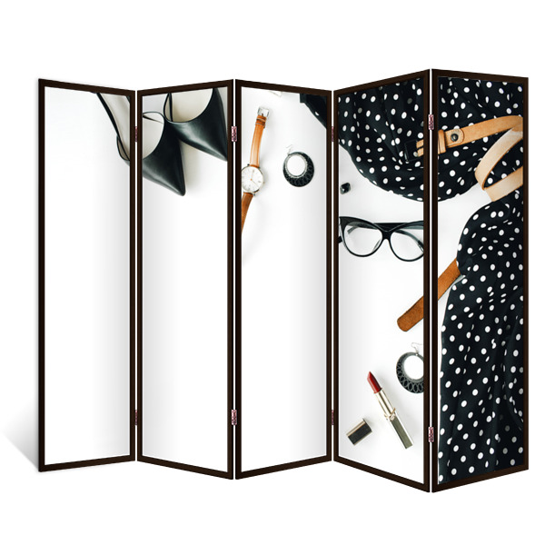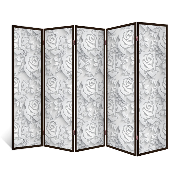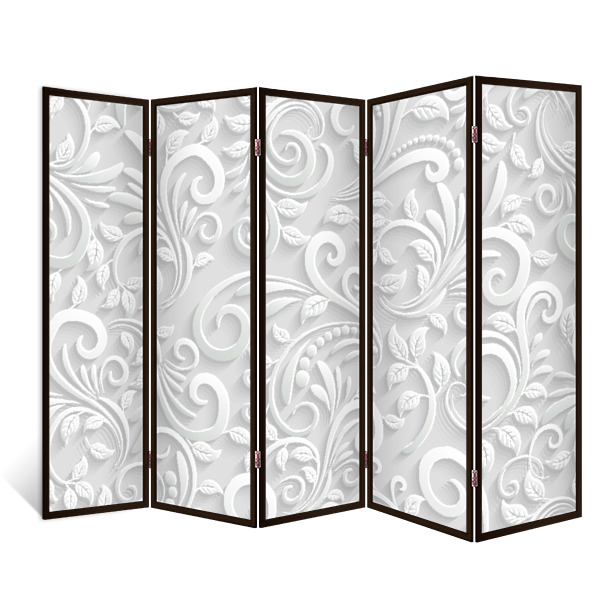Ширма-перегородка имеет непрозрачный деревянный каркас из нескольких створок.