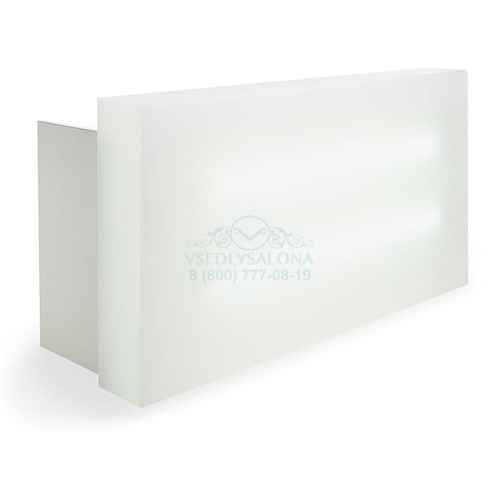 Стойка администратора. Фасад - белый акрил с подсветкой, тумбы и столешница - дерево. Длина 150см или 200см.