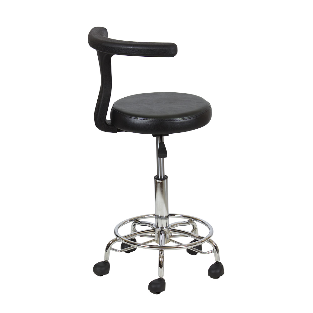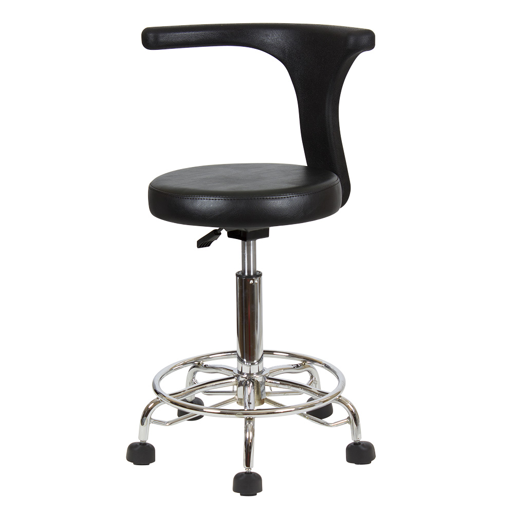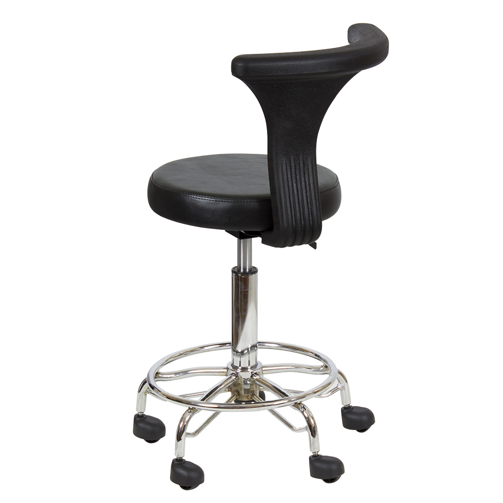 Стул мастера на хромированном основании с опорой для ног и на хромированной пневматике.