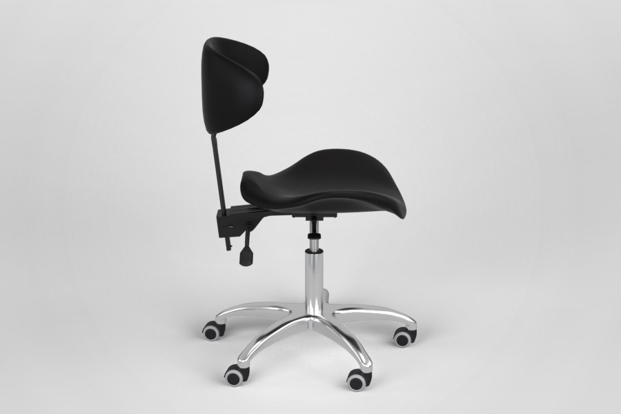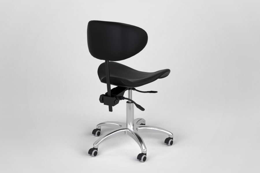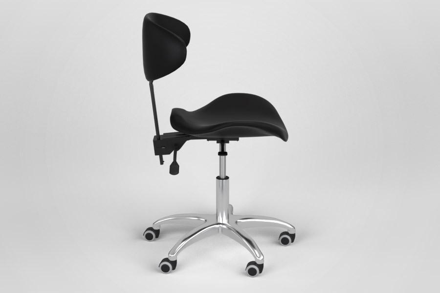 Особенности изделия: анатомическая форма сиденья и спинки, хромированное пятилучье на бесшумных прорезиненных колесах, пневматический подъемник, износостойкая экокожа. Регулировка стула по высоте и наклон спинки осуществляется нажатием рычагов, расположенных справа под сиденьем.