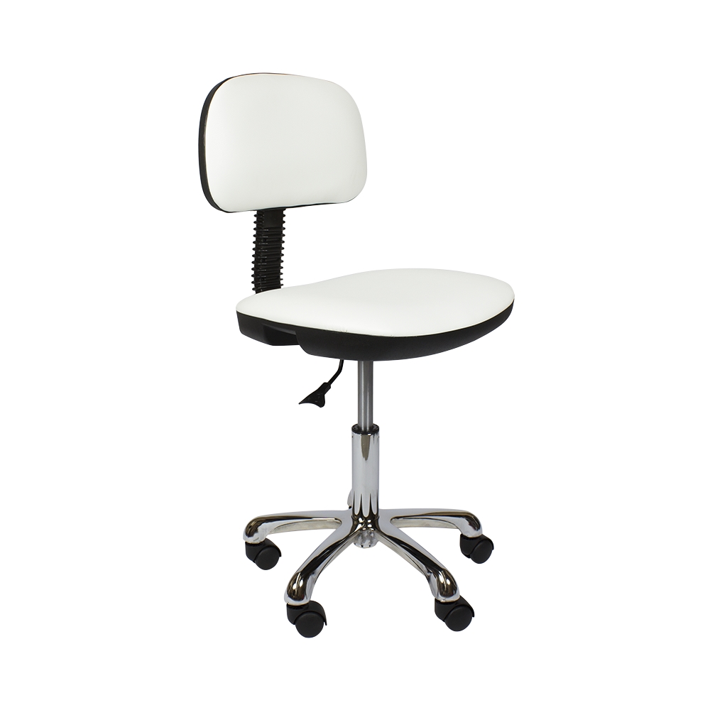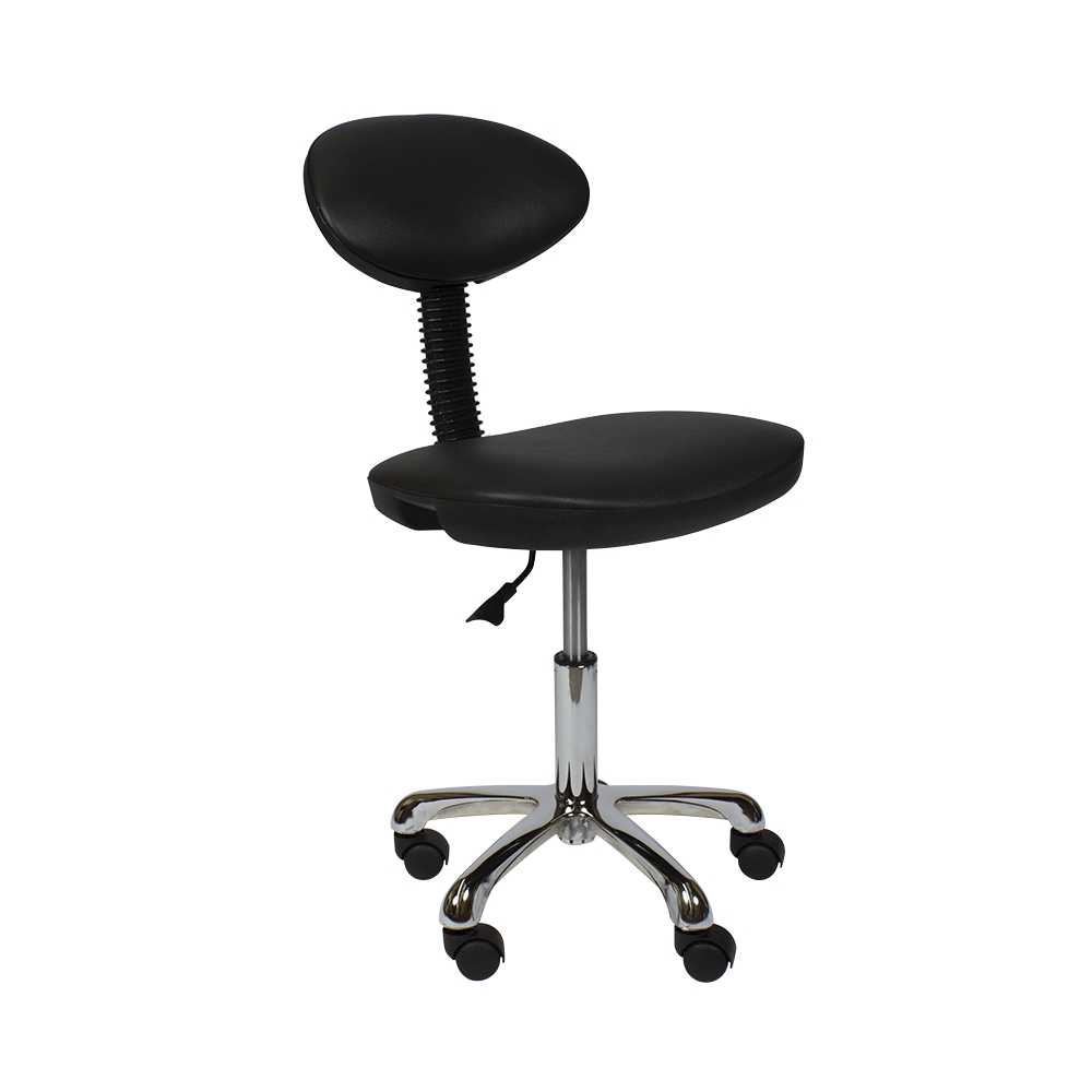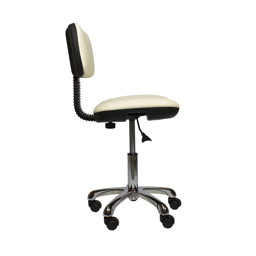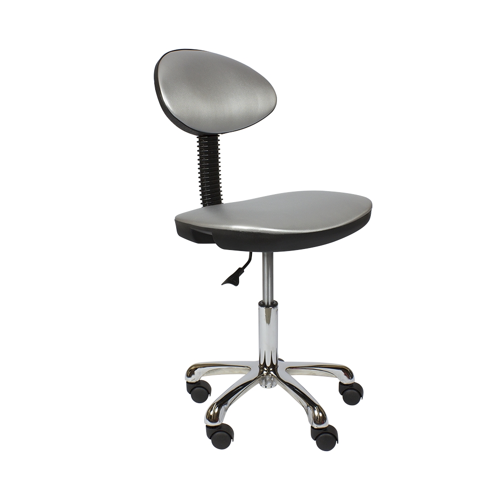 Мягкий стул мастера со спинкой и с пневматической регулировкой высоты на основании пятилучье, хром.