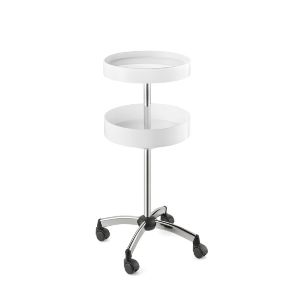 Тележка для окрашивания "JOLLY DOUBLE ROUND" - тележка с артикулом A-м60003007 двухъярусная из пластика на колесах. Идеально подходит в качестве подставки под шампуни и для использования рядом с парикмахерской мойкой.