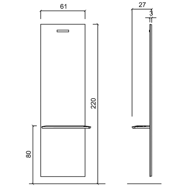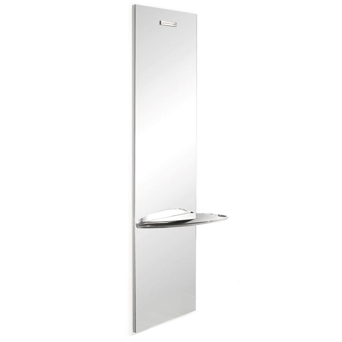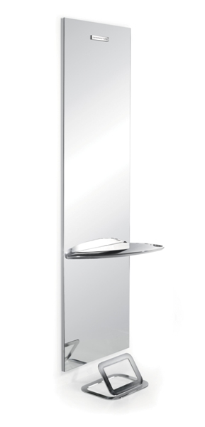 Зеркало парикмахерское "Eco" - прямоугольной формы. Зеркало оснащено алюминиевой столешницей оригинальной формы с отверстием для фена. Крепление к стене.