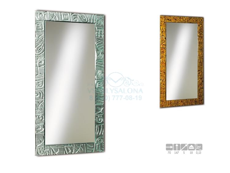 Зеркало парикмахерское прямоугольной формы, с гравировкой рисунка на стеклянной раме. Зеркало крепится к стене. Возможен цвет рамы: серебро, золото. Подставка под ноги заказывается отдельно, как дополнительная опция.