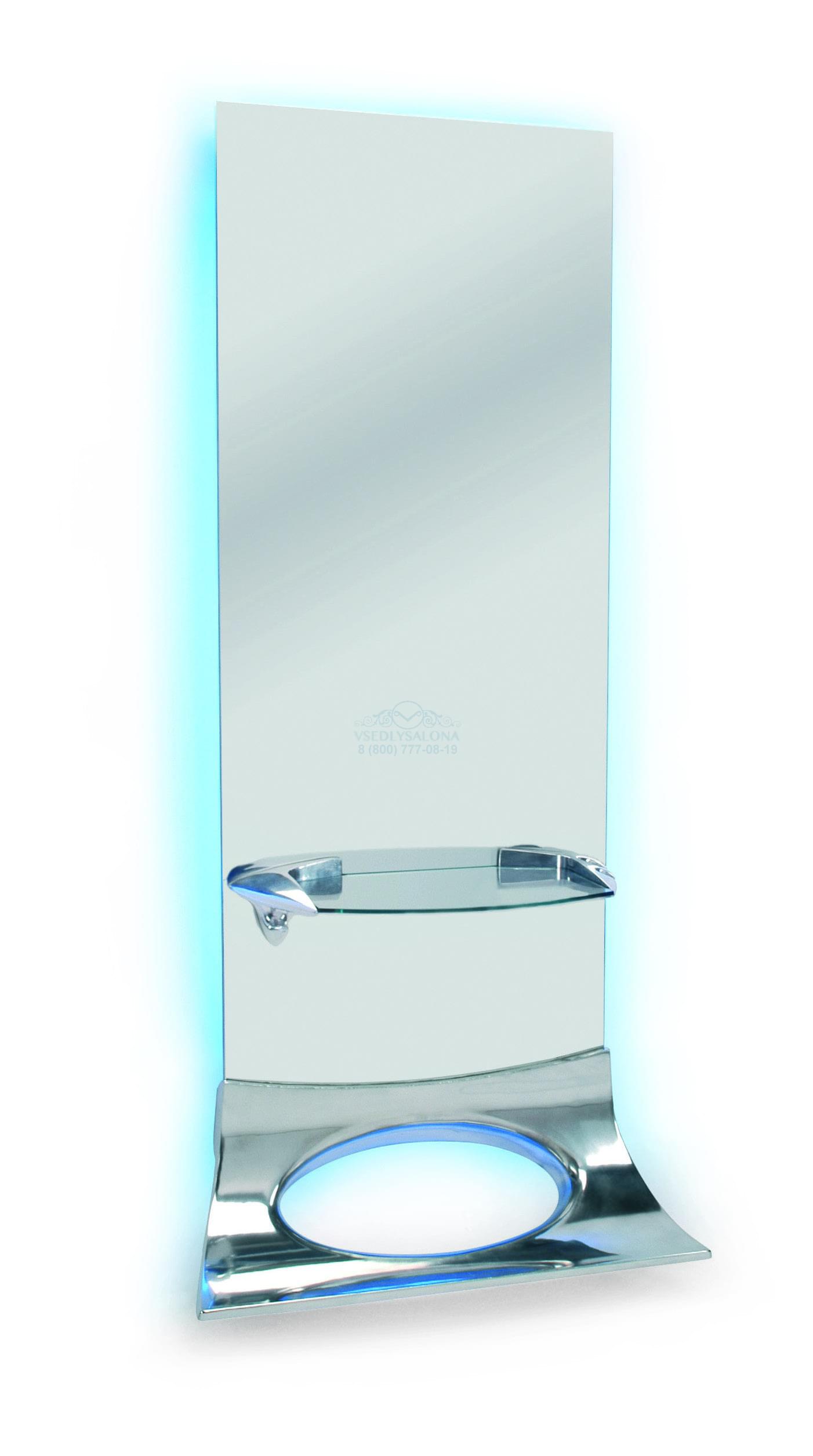 Зеркало парикмахерское, одностороннее, крепление к стене. Хромированная столешница и подставка под ноги. Возможен вариант с подсветкой. Размер: 90,5х42,5х200