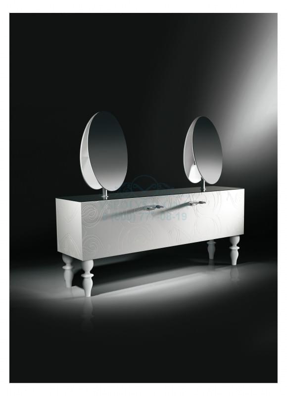 Зеркало парикмахерское на 4 рабочих места. Черный или белый лакированный каркас с узором. Размер: 200х83х54